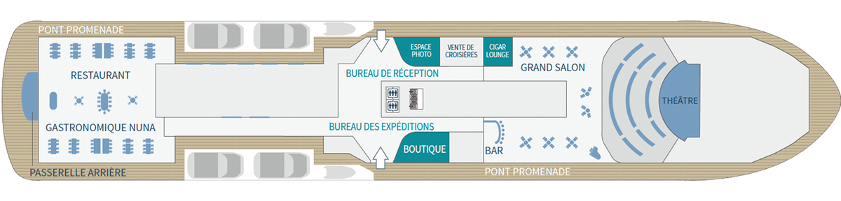 極地クルーズの新時代を創るラグジュアリー4隻のシスターシップシリーズは、世界で初めてラグジュアリークラスの客船で極地をクルーズすることを前提に建造されました。 132室(※)のためにデザインされたコンパクトなその美しい船形はポナンの哲学を体現しています。