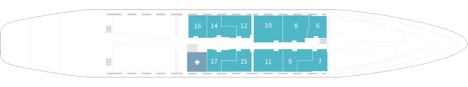 キャビンの数はわずか16室で、2021年には大改装を実施。