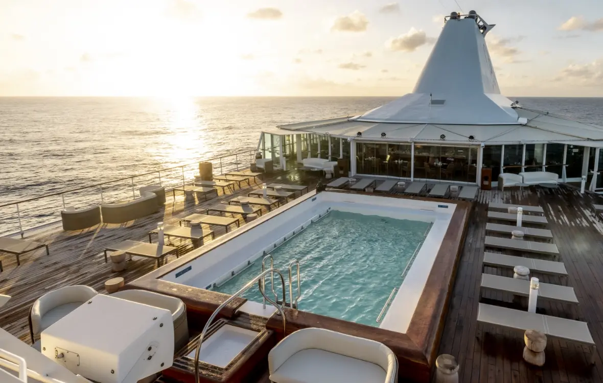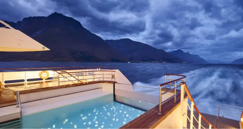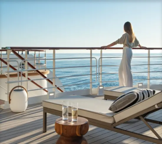 大きく取られた窓と船尾デッキから、息をのむのような世界の絶景をお楽しみください。