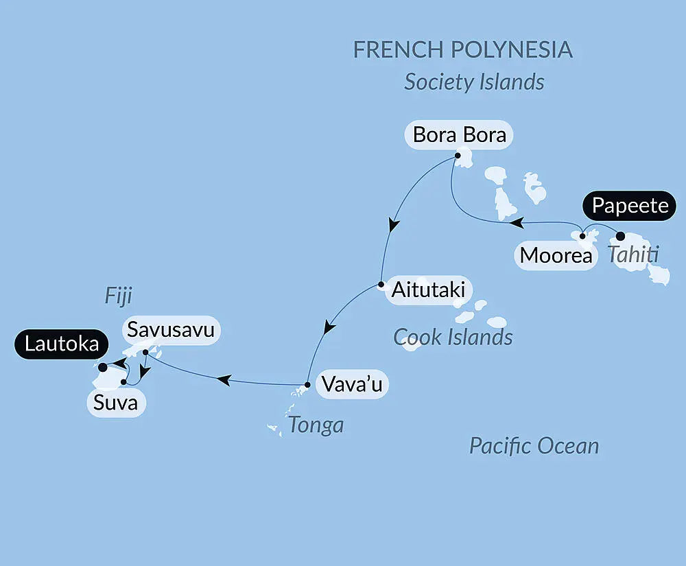 タヒチ発ラウトカ着|南太平洋の島々と文化 [2027年発]15日間